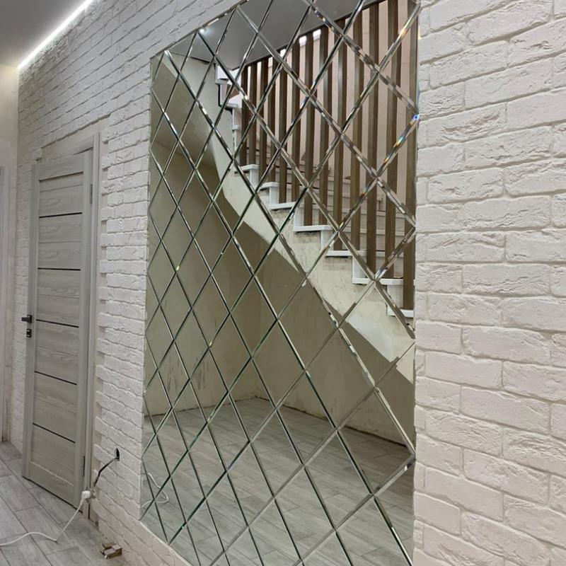 Использована серебристая зеркальная плитка "вытянутый ромб".