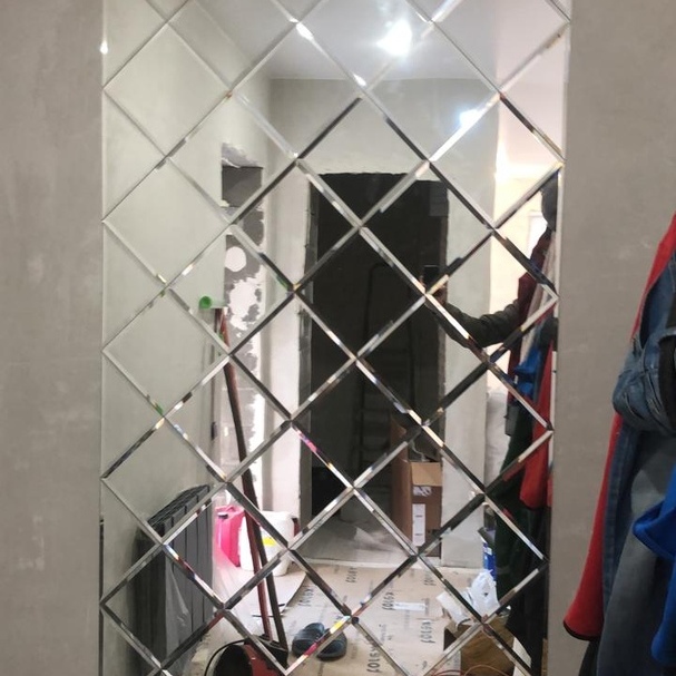 Использована серебряная зеркальная плитка «вытянутый ромб».