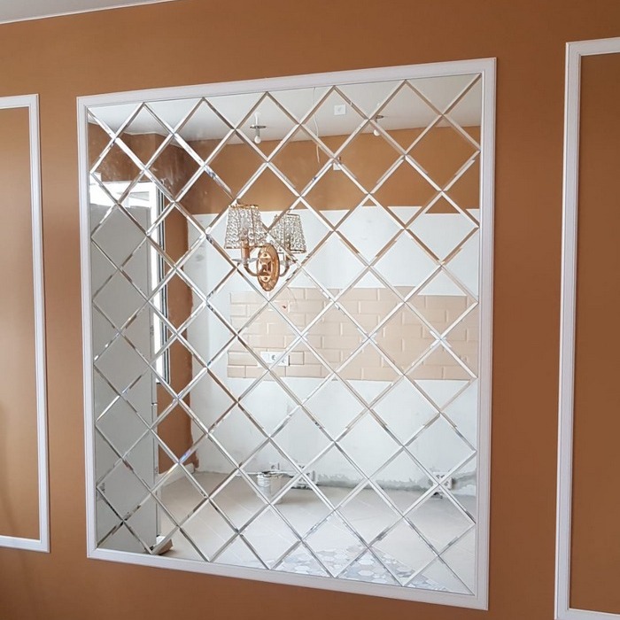 Использована серебряная зеркальная плитка «вытянутый ромб».
